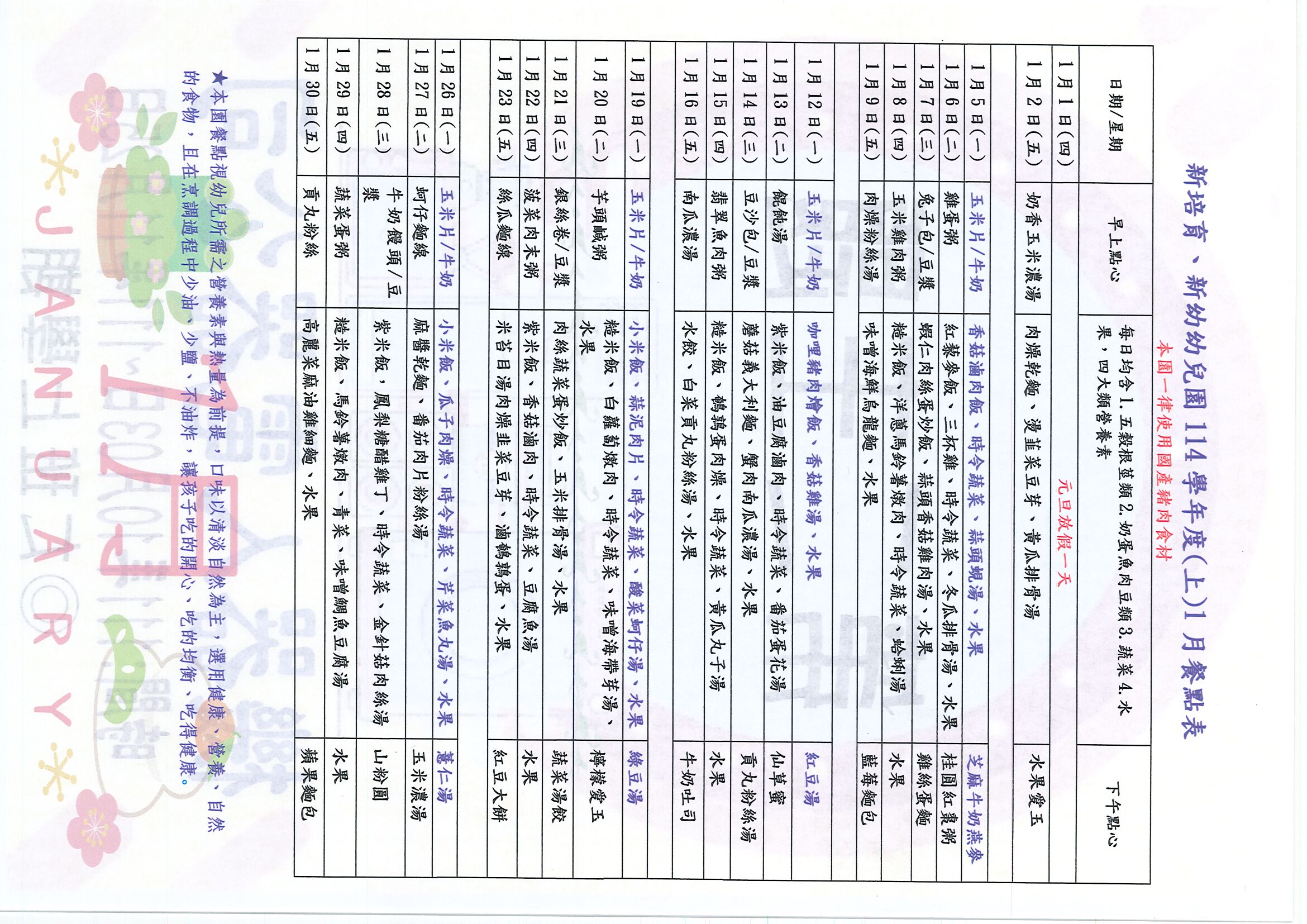 本月餐點表下載
