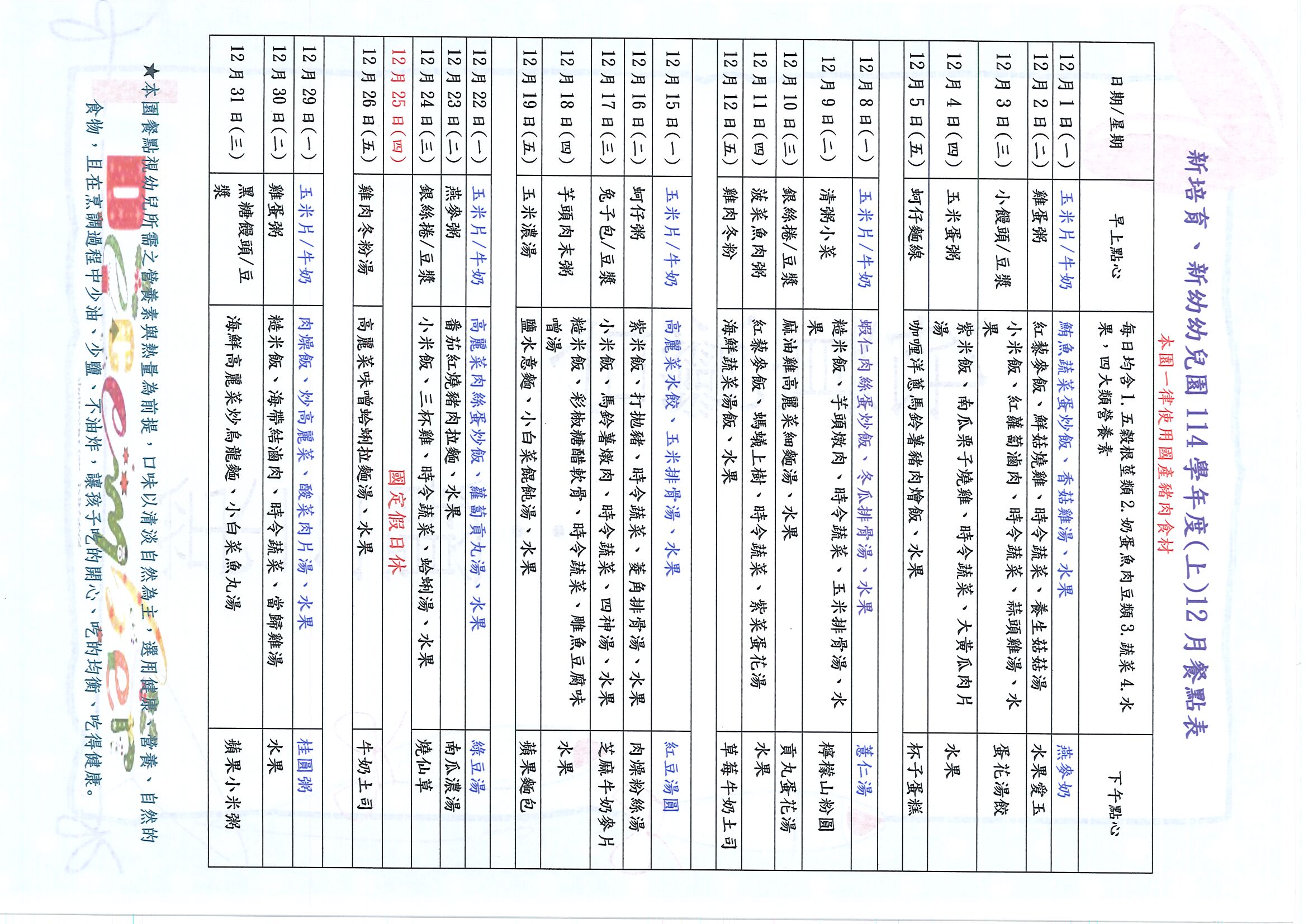 114學年度(上)12月菜單